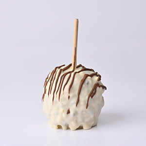 THE most amazing white chocolate chip cookie experience you have ever eaten! We take our large Granny Smith Apples and dip them into our rich and creamy caramel just before we roll them in a crushed chocolate chip cookie dough mixture. We then take it one step further and dip the entire apple yet again but this time into white chocolate and finish it off with a milk chocolate drizzle. We guarantee this will be one of your new favorites!